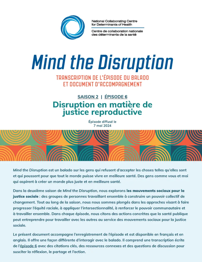 Découvrez l’épisode 3 de la saison 6 « Disruption en matière de justice reproductive » en écoutant l’épisode et ou en lisant le document d’accompagnement, qui comprend une transcription, des citations clés, des ressources connexes et des questions de discussion pour susciter la réflexion, le partage et l’action.