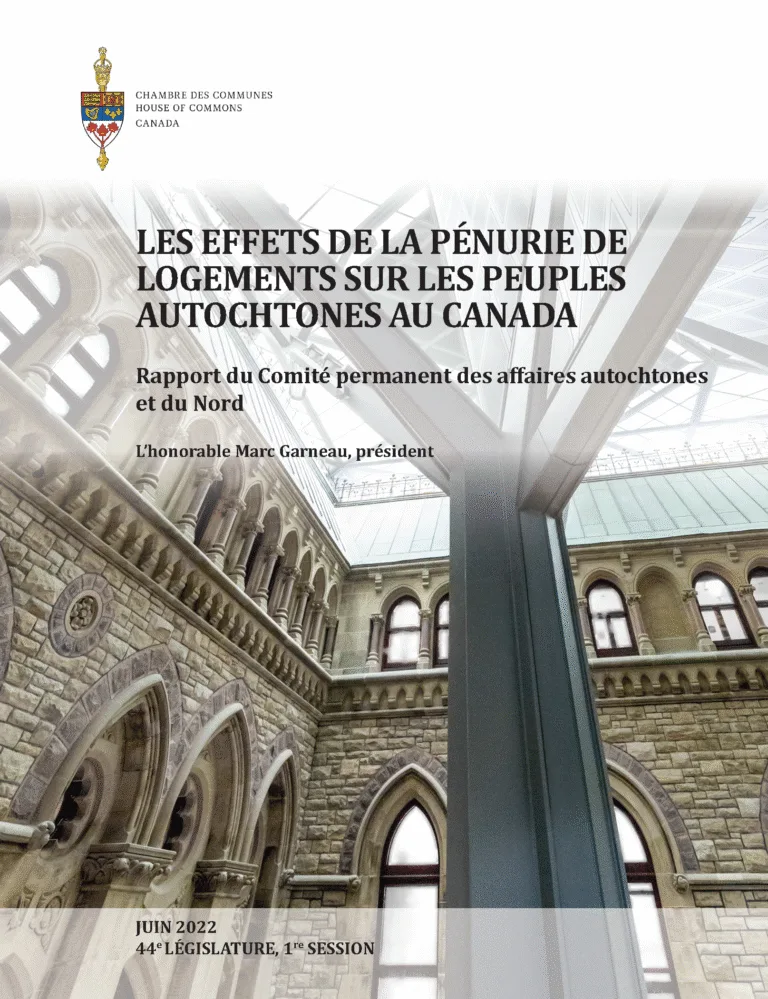 Ce rapport du Comité permanent sur les affaires autochtones et du Nord de la Chambre des communes analyse la crise du logement qui frappe les peuples autochtones du Canada, notamment ses effets sur la santé physique et mentale. Le rapport présente 20 recommandations pour s’attaquer aux inégalités systémiques et favoriser l’apport de solutions à long terme, durables et autodéterminées aux problèmes de logement.