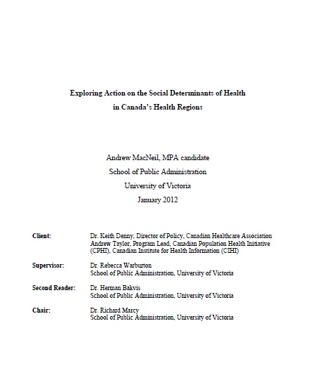 This Master of Public Administration thesis examines over 2,000 Canadian interventions that address one or more social determinants of health. The author examines the interventions using health equity and structural lenses.